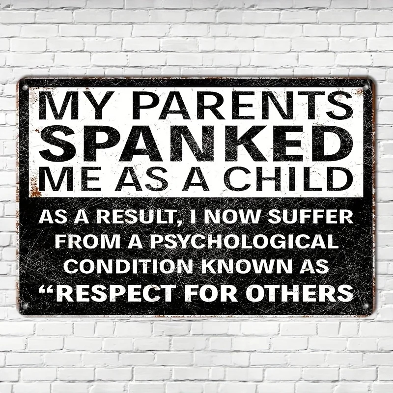 Vintage Metal Wall Art Sign - Funny "My Parents Spanked Me