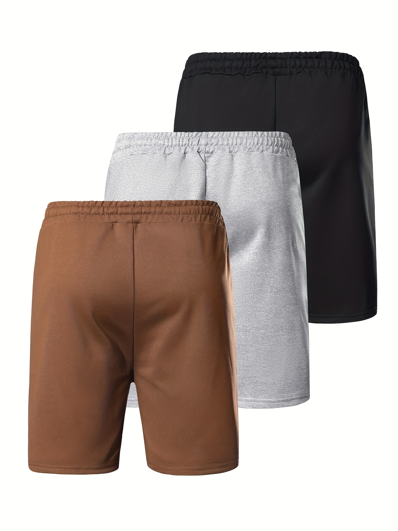 3pcs Men's Solid Colour Shorts With Drawstring & Shorts, Comfy Breathable Casual
